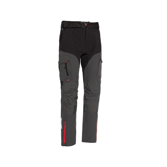 Pantaloni in softshell elasticizzato con tessuto Ripstop su ginocchia e pannelli posteriori per resistenza e durata. Dotati di finitura idrorepellente DWR, multitasche con cerniera e vita parzialmente elasticizzata, offrono comfort, libertà di movimento e funzionalità ideali per lavori all’aperto e attività dinamiche.