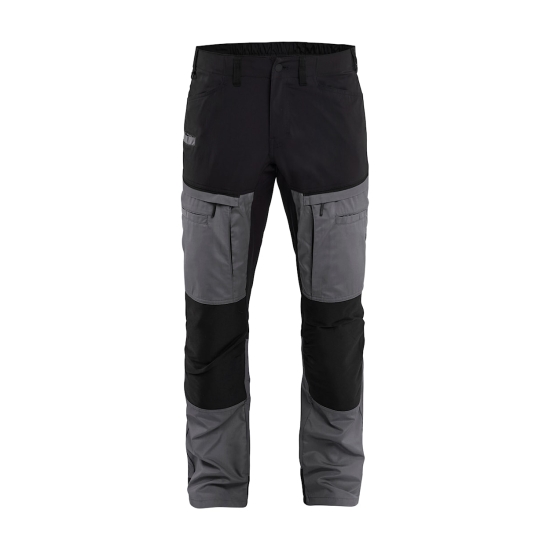 Pantalone flessibile e resistente con elastico in vita e inserti elasticizzati per massima libertà di movimento. Ginocchia rinforzate in CORDURA stretch per maggiore resistenza, dotato di tasche multiple (posteriori, anteriori e laterali) e dettagli riflettenti per sicurezza in condizioni di scarsa illuminazione. Ideale per lavori di service, logistica, manutenzione ed edilizia, unendo comfort, durabilità e praticità.