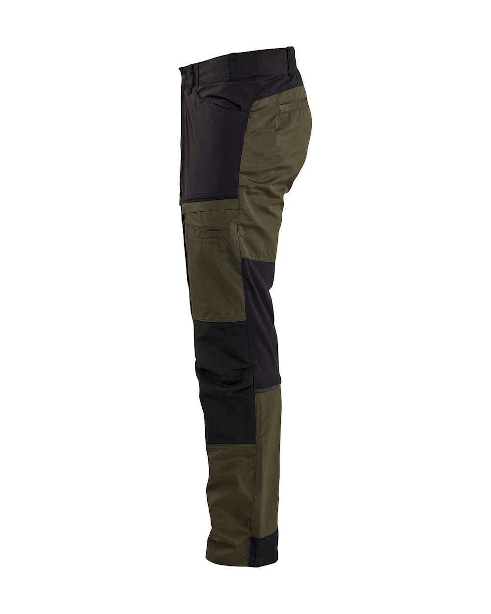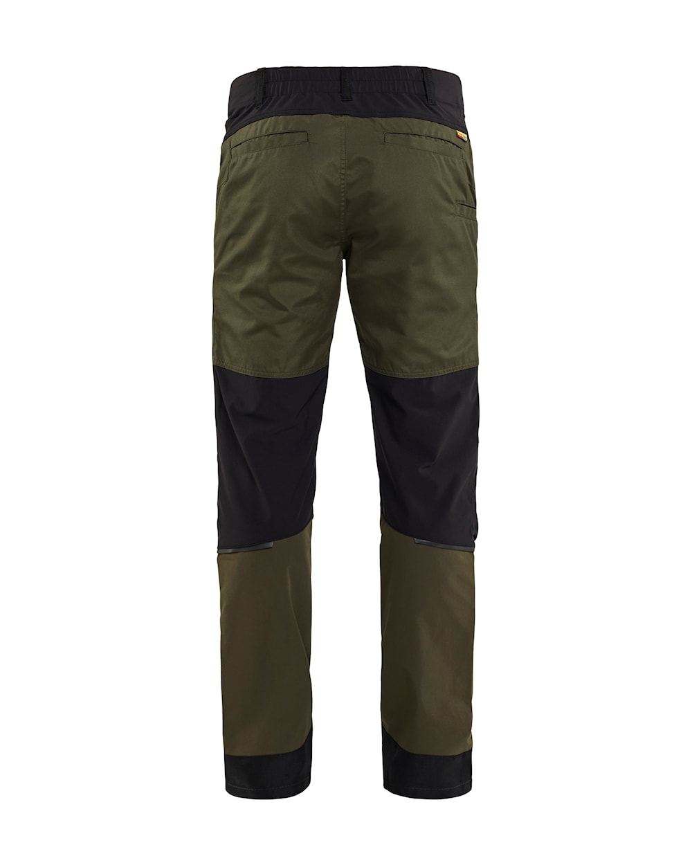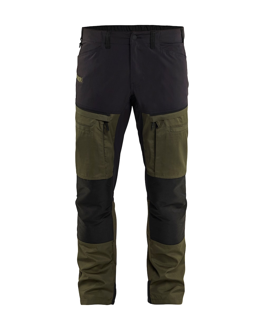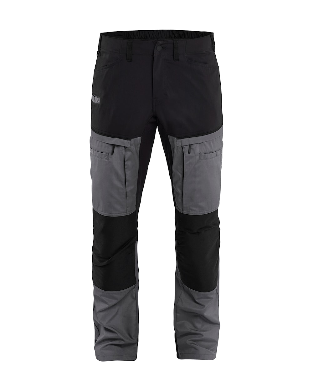 Pantalone flessibile e resistente con elastico in vita e inserti elasticizzati per massima libertà di movimento. Ginocchia rinforzate in CORDURA stretch per maggiore resistenza, dotato di tasche multiple (posteriori, anteriori e laterali) e dettagli riflettenti per sicurezza in condizioni di scarsa illuminazione. Ideale per lavori di service, logistica, manutenzione ed edilizia, unendo comfort, durabilità e praticità.